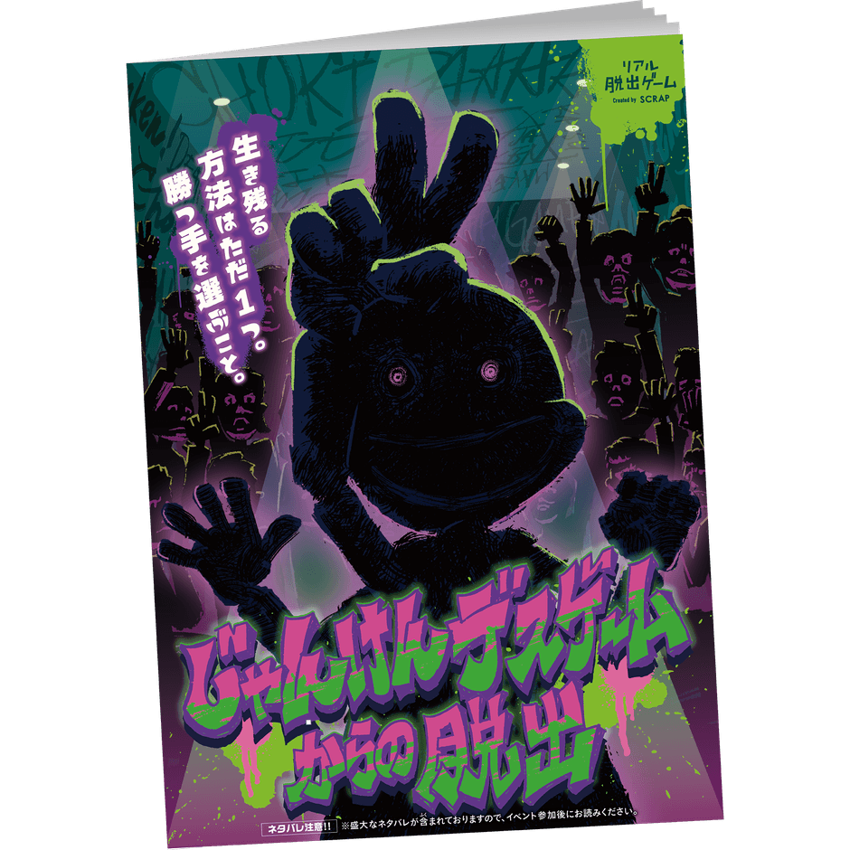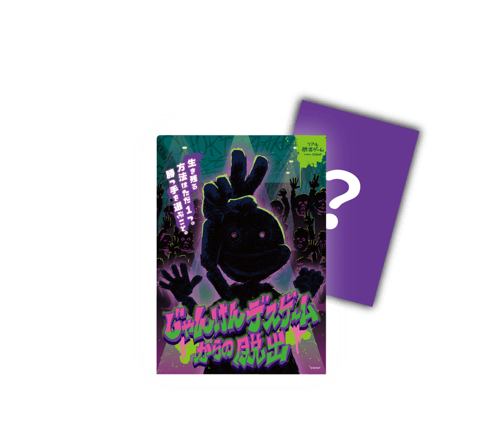 仕掛けられた謎を解き明かし、危機的状況から脱出を目指す「リアル脱出ゲーム」と、理不尽な死から逃れるために参加者が命を懸けた危険なゲームに挑む「デスゲーム」。そこに誰もが知っている「じゃんけん」の要素を融合した新作リアル脱出ゲームが、『じゃんけんデスゲームからの脱出』です。