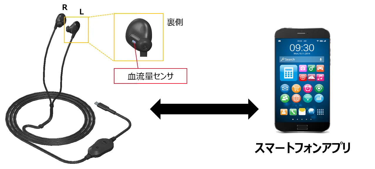 「sNAPout(R)」は血流量センサを搭載したイヤホンデバイスと、AIを搭載したスマートフォンアプリで構成されます。仮眠したいタイミングでイヤホンデバイスを装着、アプリを起動し、選択したお好みの入眠音を聞きながら仮眠を取るだけで、AIが最適な起床タイミングを判定してアラームで起床を誘導します。