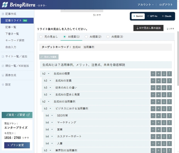 SEOに強いAIライティングツール「BringRitera(リテラ)」の概要
