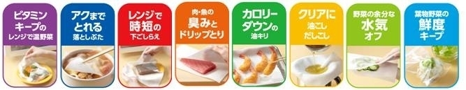 ビタミンキープやカロリーダウン、時短の下ごしらえなどの8つのお料理テクニックが1枚で簡単にできるので、料理の幅広い用途に使えます。