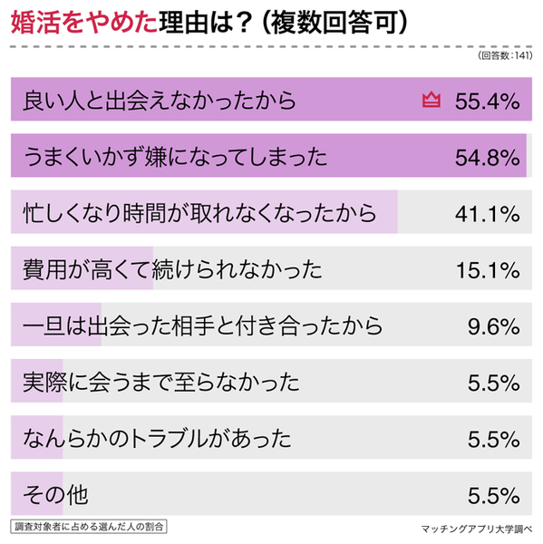 婚活をやめた1番の理由は「良い人と出会えなかったから」で55.4%