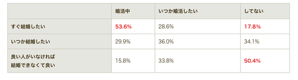 「結婚願望の強さ」と「婚活状況」には負の相関関係あり
