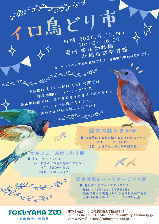 [愛鳥週間関連企画] 周南市徳山動物園「イロ鳥どり市」を開催