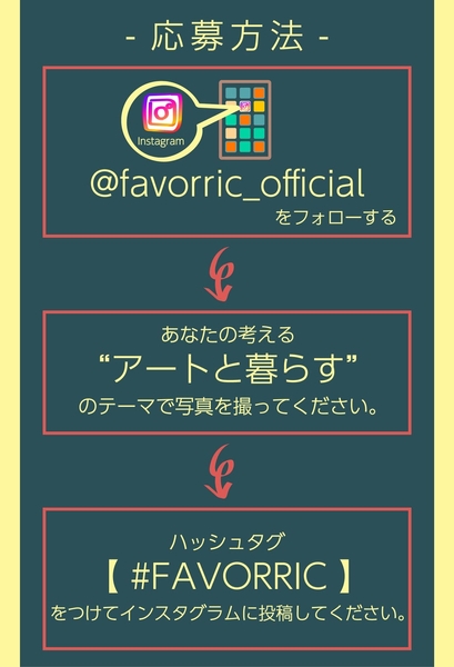 キャンペーンの参加方法は「アートと暮らす」をテーマに、あなたが思うオリジナルのひとコマを写真に撮って『#FAVORRIC』のハッシュタグを付けて投稿するだけ!