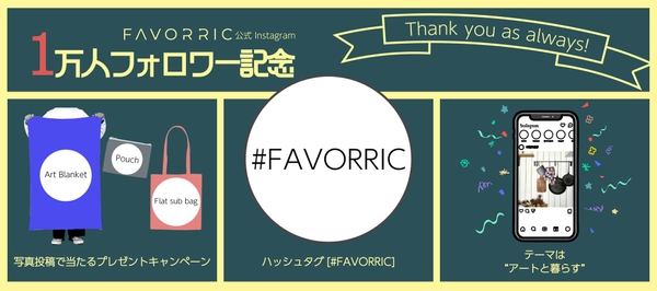 「アートと暮らす。」をコンセプトに、アート作品をデザインした商品を展開するブランドFAVORRIC(フェイバリック)が、Instagram公式アカウントのフォロワー1万人突破を記念して、プレゼントキャンペーンを開催します。