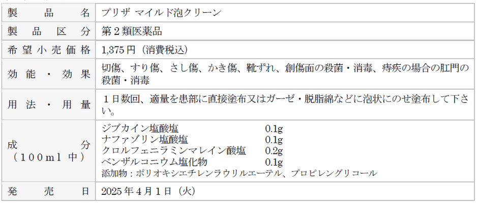 大正製薬株式会社[本社:東京都豊島区 社長:上原 茂](以下、当社)は、痔疾の場合のおしり(肛門)の殺菌・消毒に効果を発揮する泡タイプの皮膚用薬「プリザ マイルド泡クリーン」(第2 類医薬品)を2025年4月1日(火)より発売いたします。