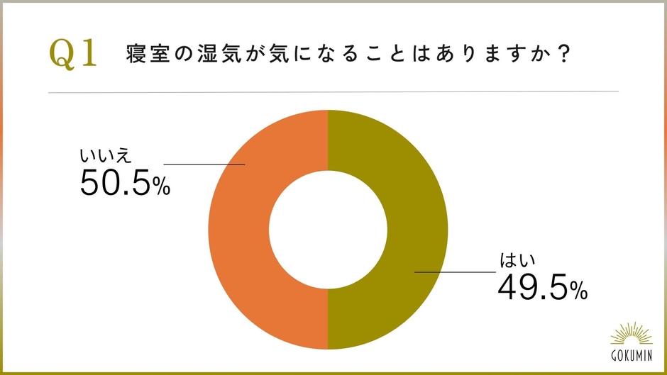 寝室の湿気に対する意識を質問したところ、「はい」と「いいえ」がそれぞれ半数の結果に。