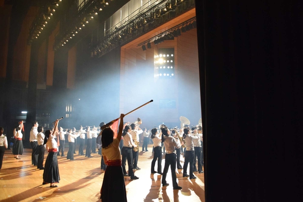 定期演奏会は吹奏楽ステージ、チアリーディングステージ、ドリルステージで構成され、吹奏楽部やチアがステージに華を添え、紫紺の集いでは応援指導班が迫力あふれる演舞を披露します。