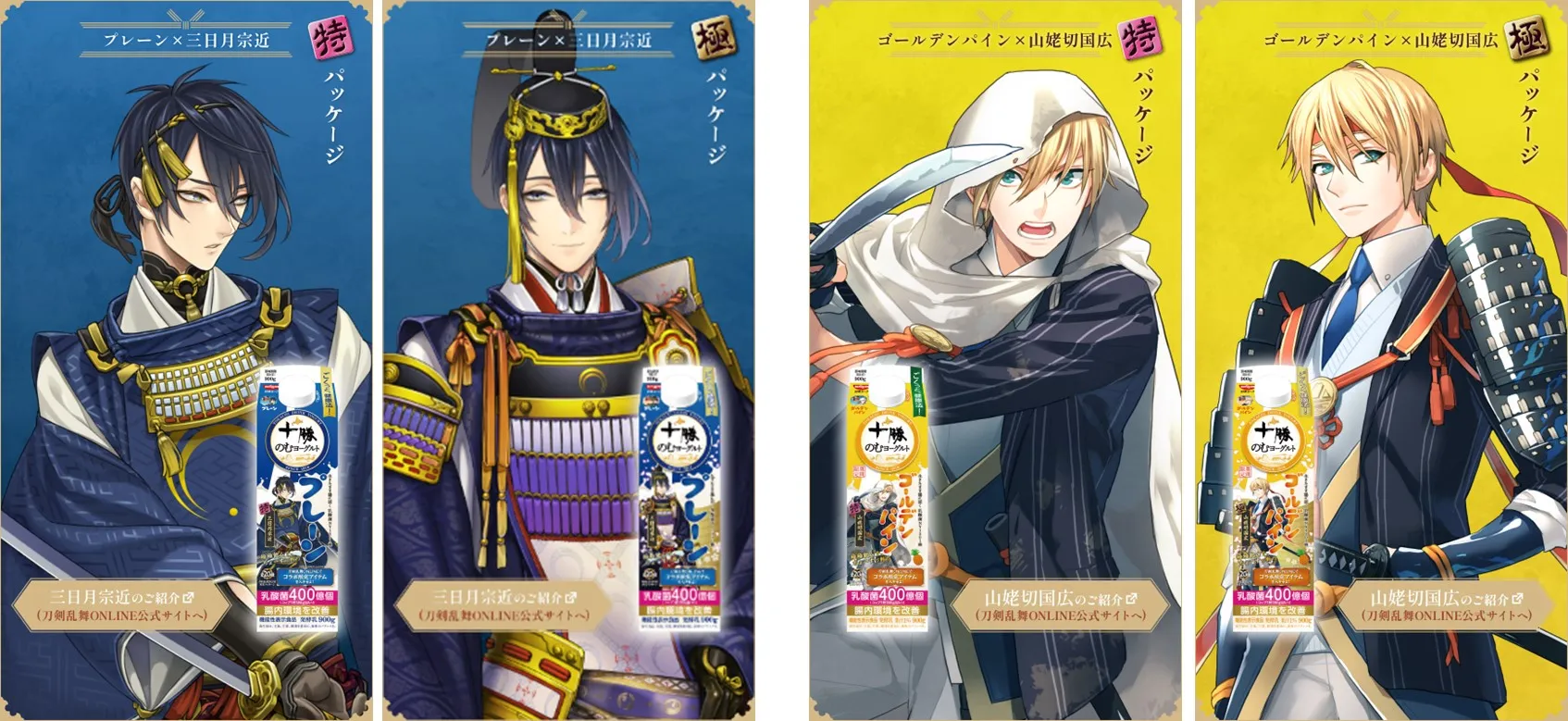 十勝のむヨーグルト×「刀剣乱舞ONLINE」 十振り(10キャラ)の刀剣男士が集結! ゲーム内にオリジナルの便利道具『十勝のむヨーグルト』を実装。 応募者全員にプレゼント! 20種のコラボ限定パッケージが発売!