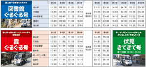 「図書館ぐるぐる号」と「霞ぐるぐる号」には運行ダイヤがあり、決まった時間を走ります。