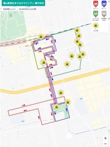この実証実験では、グリスロ2~3台でウォーカブルエリア内の商店街を周回して、短距離の移動をサポートします。また、協力店舗のお得なサービスを受けられる電子クーポンを発行します。