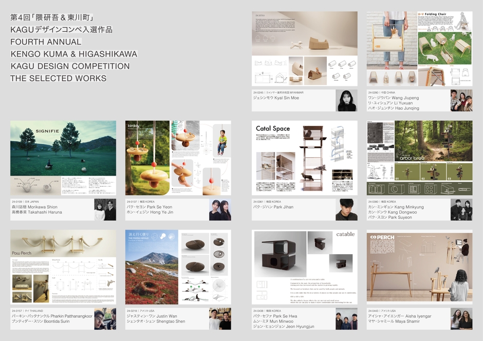 写真文化首都北海道「写真の町」東川町が、建築家隈研吾氏とともに実施する第4回『「隈研吾&東川町」KAGUデザインコンペ』が最終審査を迎えます。第4回となる今回は、「動物と生きる家具」をテーマに世界各国から440件の応募が寄せられました。厳正な審査を経て選ばれた10組の入賞者が、最終審査に向けた公開プレゼンテーションを行います。