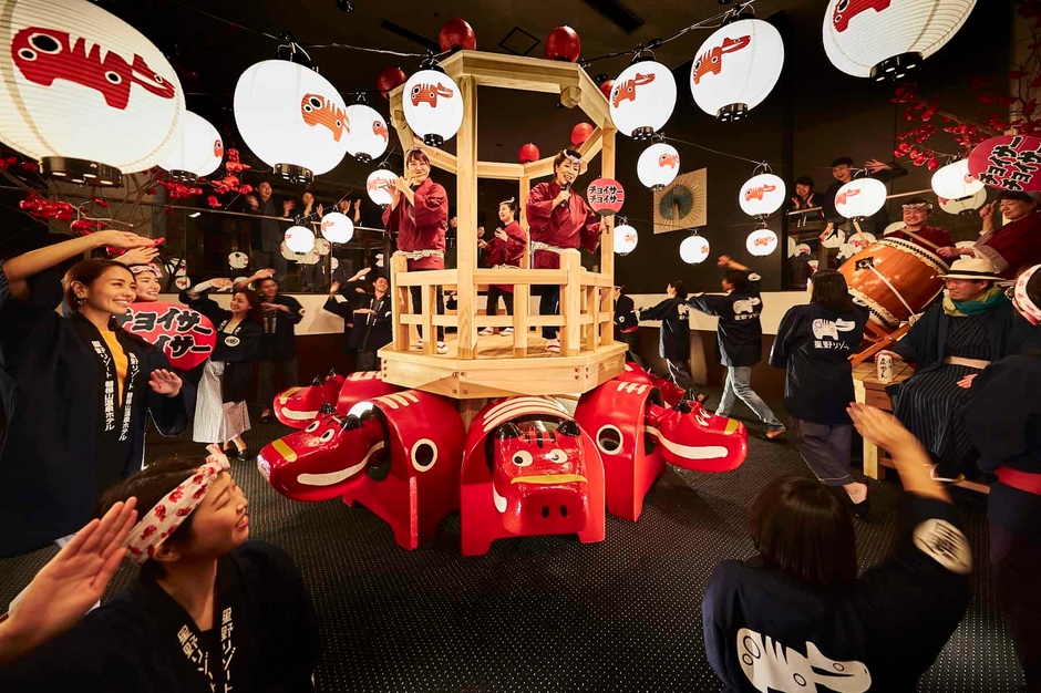 【磐梯山温泉ホテル】赤べこの提灯&赤べこがひく屋台が並ぶフォトジェニックな空間で、福島の地酒や秋の味覚を楽しむ「赤べこ秋祭り」開催|期間:2022年9月17日~11月23日