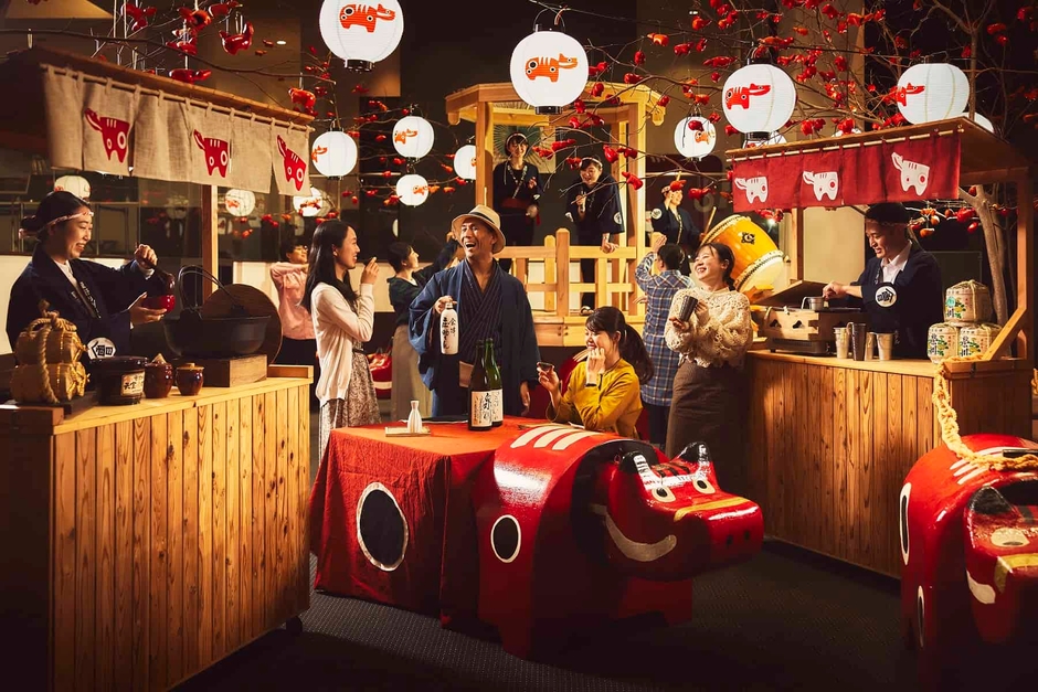磐梯山(ばんだいさん)の麓に位置するリゾートホテル「星野リゾート 磐梯山温泉ホテル」は、2022年9月17日より、熱燗と会津の秋の味覚を楽しむ「赤べこ秋祭り」を開催します。赤べこの提灯と、赤べこがひく屋台が並ぶフォトジェニックならぬ「べこジェニック」な空間が特徴です。赤べこの屋台からは、芋煮やあんぽ柿など、会津の秋の味覚を提供します。秋の味覚と共に楽しむのは、寒くなる秋にピッタリな熱燗です。地元の酒蔵から認定を受けた「お燗名人」が、熱燗の魅力をレクチャーしながら地酒を提供します。