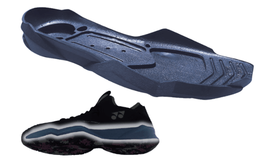 また、シューズ底には「セミワンピースアウトソール」を搭載し、前足部と後足部の外側ラバーをつなげることで接地面積が増大。グリップ力とねじれに対する剛性が向上し、素早い切り返しを生み出します。