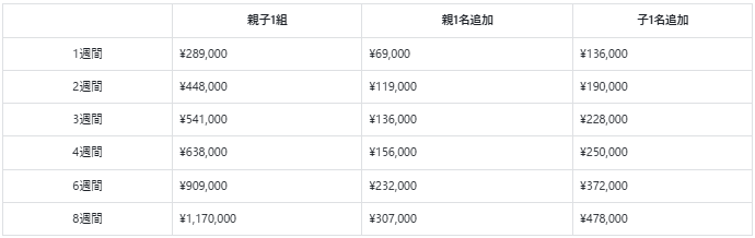 ※費用に含まれるもの:授業料(4時間分)、ホテル、食事、入学金、SSP(特別許可証)、ID代、空港ピックアップ(お迎え)、DLT(見守りの先生)