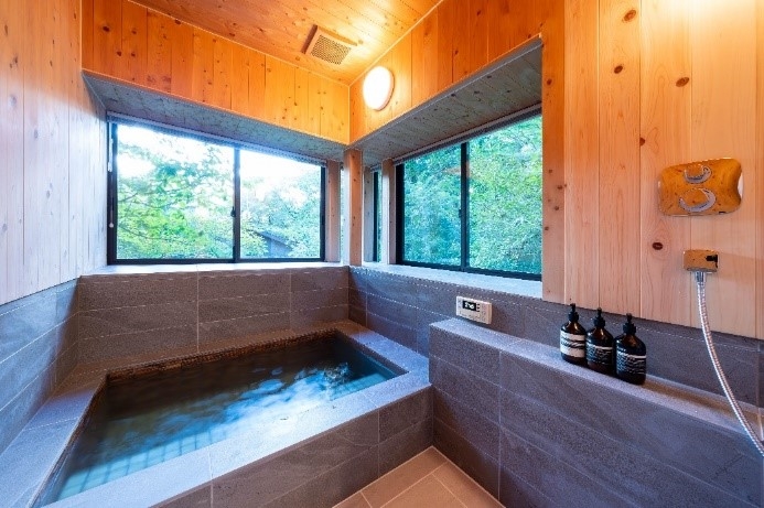 ゆったりと湯船につかりながら眺める那須の自然が、心から疲れを癒してくれます。