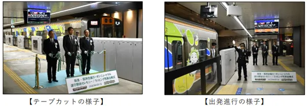 なお、カーボンニュートラル運行の開始に合わせて、本日からそのイメージをラッピングした列車の運行を開始し、大阪梅田駅で出発式を執り行いました。