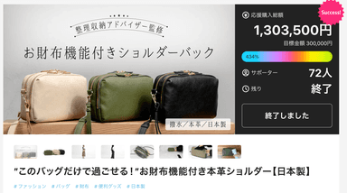 「バッグ探しの旅が終わる予感」「収納が魅力」「色味が素敵」などの応援コメントもいただき、想定を大きく上回るたくさんのお客さまにお届けすることができました。