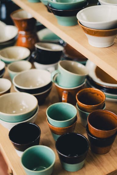 オリジナルブランド「道祖土和田窯」は、“modern mashiko”をテーマに、益子の伝統技法や釉薬を受け継ぎながら、現代の食卓に寄り添う器づくりを提案しています。