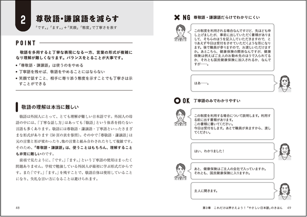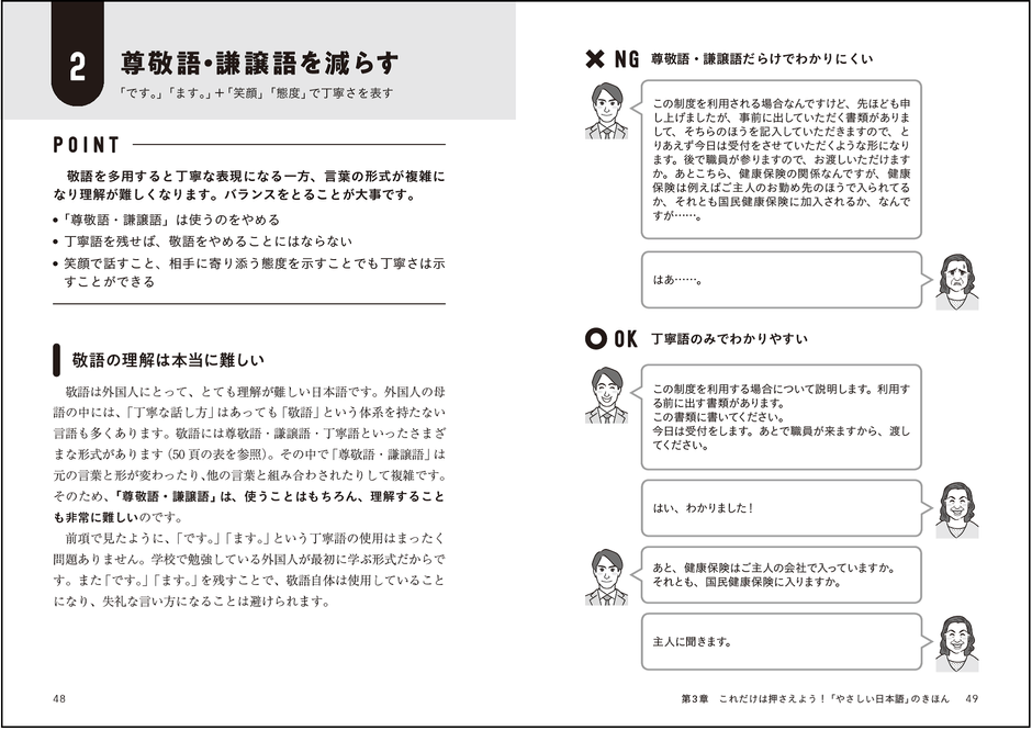 イラストを交え、NG・OKの具体的な会話例を紹介。