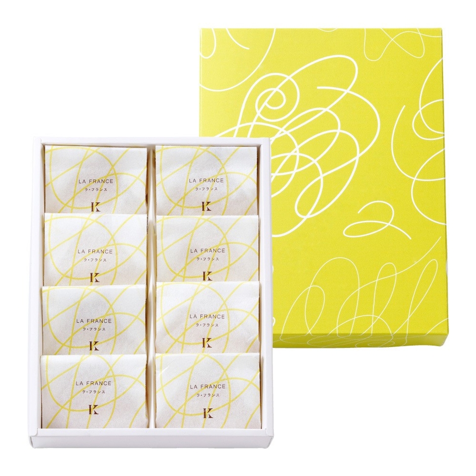 製法にこだわり、じっくりと寝かせてから焼き上げることで繊細でサクッと軽い口当たりの「きのとやクッキー」と、みずみずしい芳醇な味わいのゼリー「ラ・フランス」、「リーフパイ」を詰め合わせたギフトは贈答用に熨斗をおかけすることも可能です。