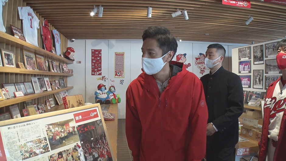 レジェンドグッズなどを展示する、鳥居が目印の「油津カープ館」では、新井選手・黒田選手の貴重なスパイクを見る事が出来た。
