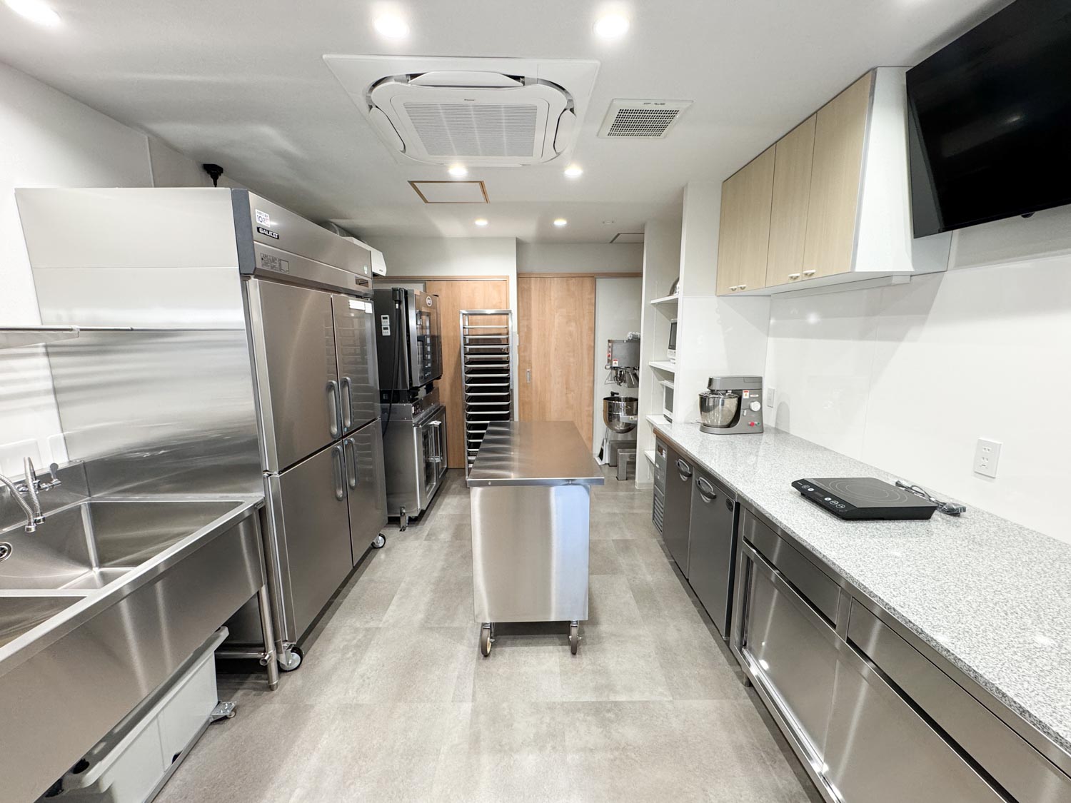 「みんなのキッチン おやつラボ」は、お菓子を作って販売したいという方を応援するために菓子製造許可が取得可能な設備にこだわったシェアキッチンで、一般的なシェアキッチンとは異なり、スチームコンベクションオーブンやホイロ、業務用ミキサーを備え、さらにはフルリノベーションした空間で充実した設備の中でお菓子作りを行えるようになっています。