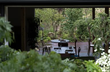 Kro Terrierは、名古屋から車で1時間ほどにある「恵那峡」に新設された1日2組限定の宿泊施設です。森の中に佇む2棟の建物は、同じ敷地内にあるカフェ・レストランを手がけたimajo design(イマジョウデザイン一級建築士事務所/東京都 世田谷区)が設計。地形や気候、日照条件を入念にリサーチし、恵那峡の自然と調和するようにデザインされています。