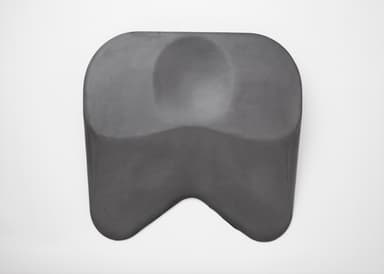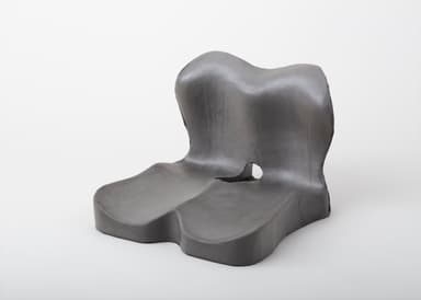 「チェアクッション」は座面に傾斜が付けてあり、背中面に凸部分があります。座面の傾斜により脚を下げ膝がおしりより下になり、背中の凸部分が仙骨を押し上げ立たせるしくみとなっています。
