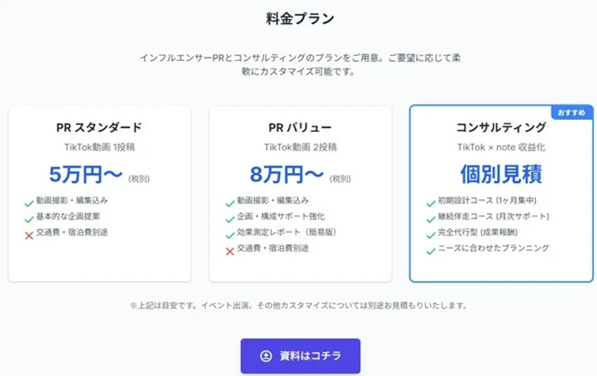 TikTokでの視聴者獲得からnoteを活用した収益化までを一貫して支援する5ステップのコンサルティングメソッドを提供いたします。