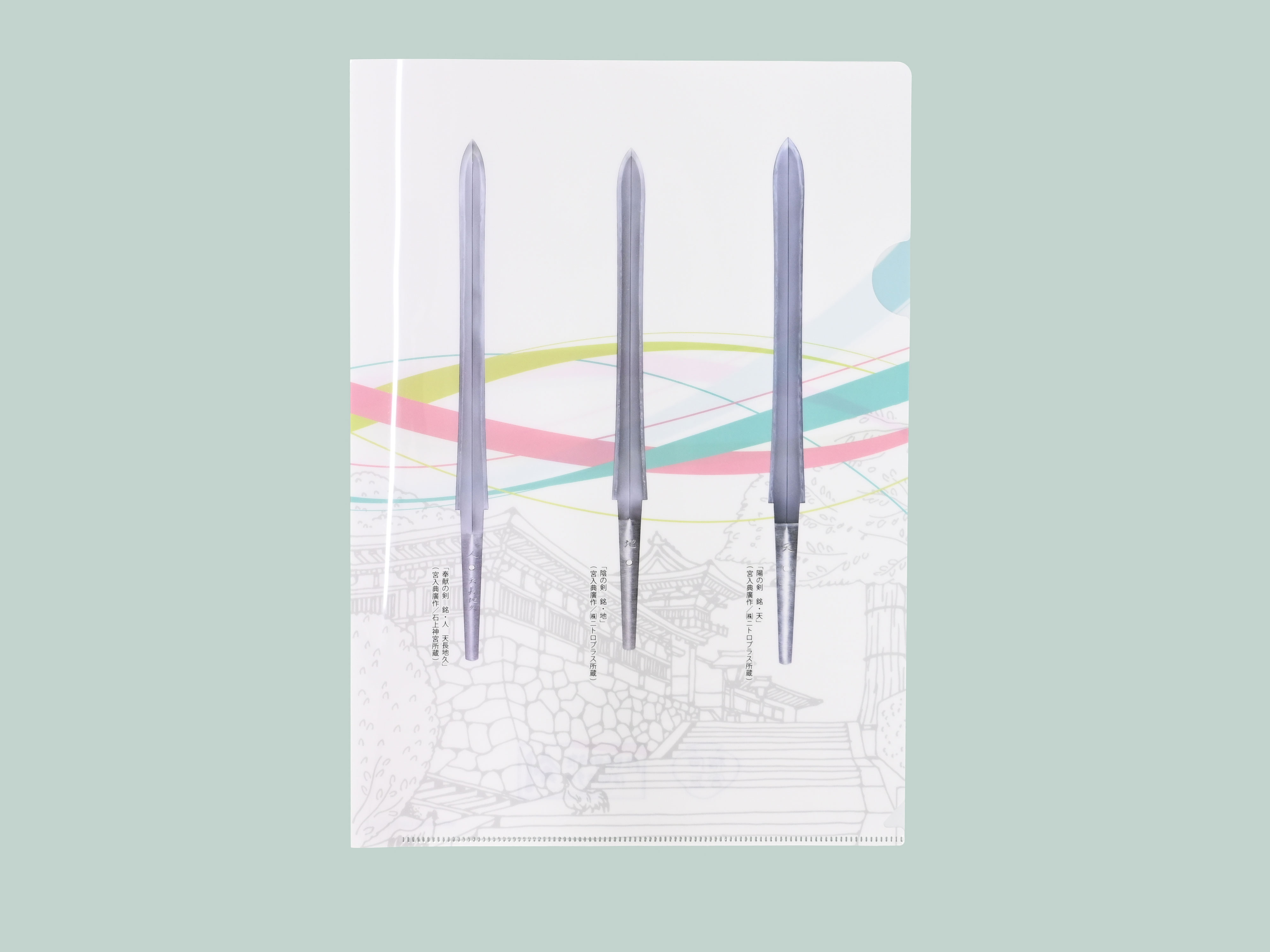 今回、人気ゲーム『刀剣乱舞ONLINE』のプロジェクトの一つとして、2021年に刀匠 宮入法廣氏により作刀された「天」「地」「銘 人 天長地久」の三振のうち、最初の二振を「陽の剣 銘 天」、「陰の剣 銘 地」として広く展示、最後の一振である「銘 人 天長地久」を未来を切り開く「奉献の剣」として世界中の人々の平和と健康を願い奉納されました。この三振揃っての展示は初めてとなります。