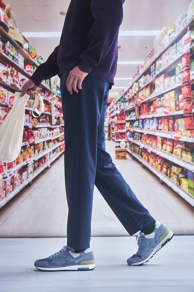 また、従来の素材からより軽く、洗濯後乾きやすく、ストレッチ性にも富んだ素材へとバージョンアップしました。細身でシルエットが美しく、ストレッチが効いていて穿き心地は抜群。