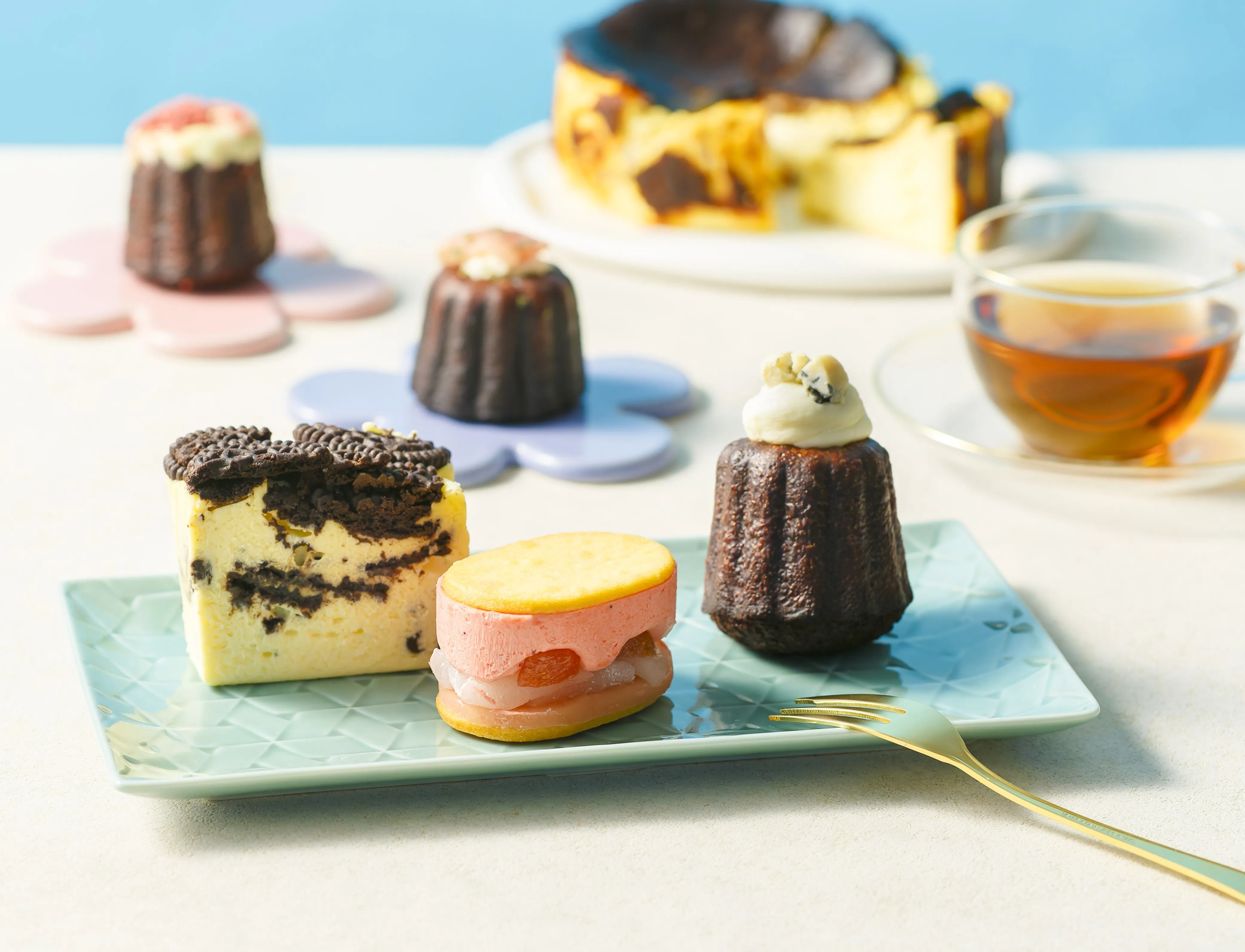 人気のバスクチーズケーキに加えて、アイアシェッケやニューヨークチーズケーキ、レアチーズケーキなど、゛タイプ別”のチーズケーキを楽しめるのがポイントです。