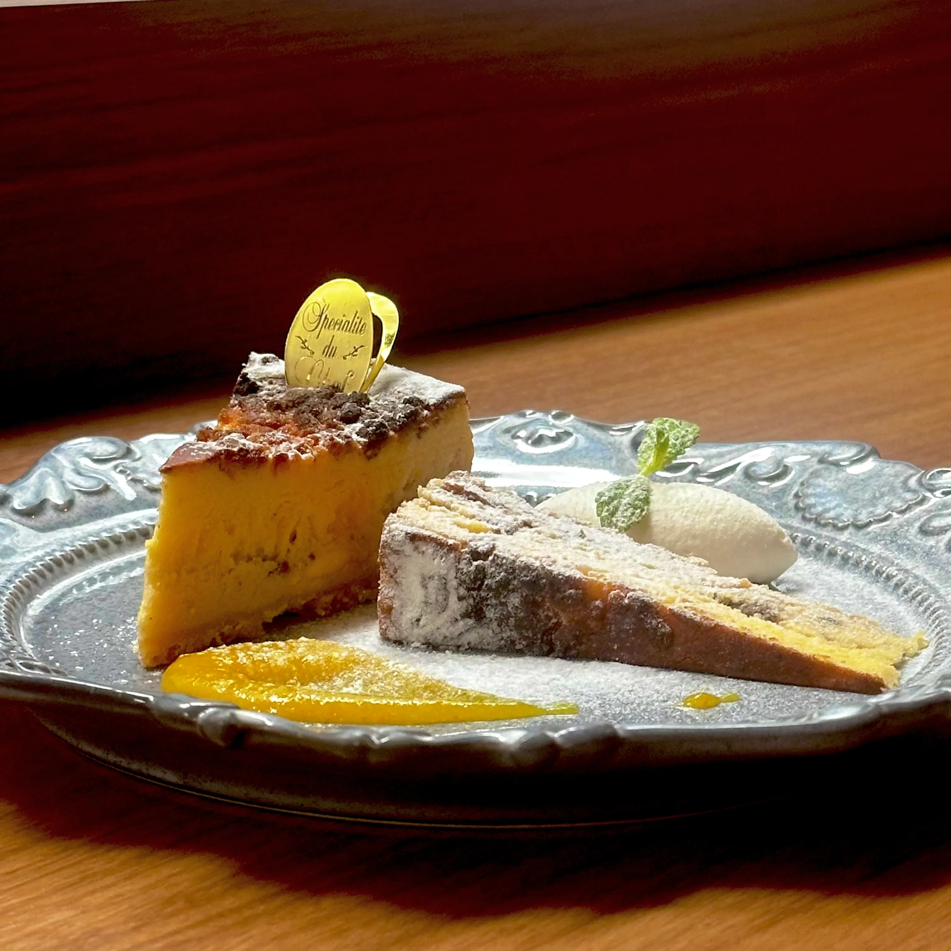 ■ 見どころ2ライブ感たっぷりのアシェットデセールで楽しめるチーズケーキ お酒とのペアリングも