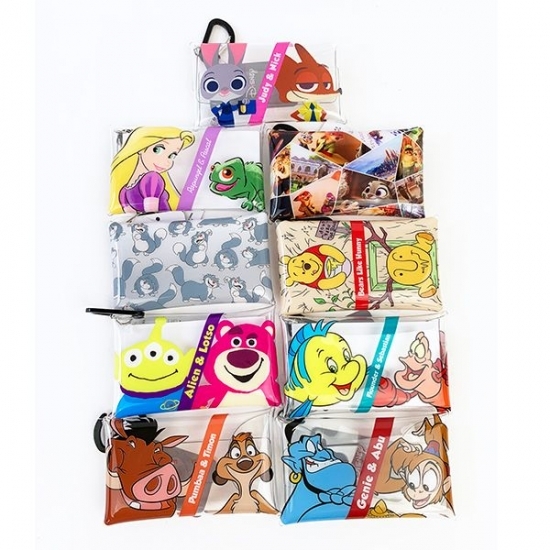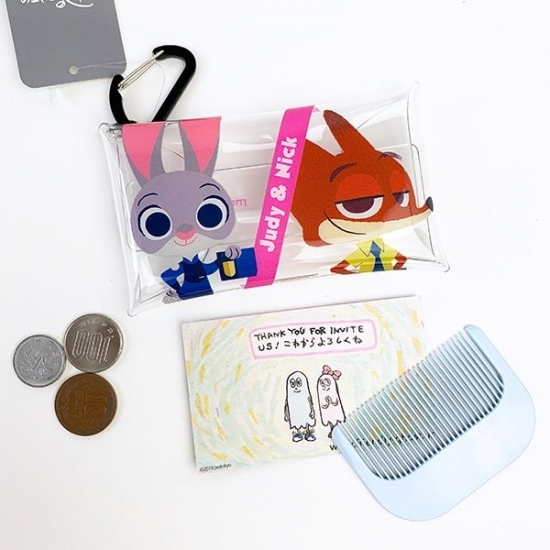 小銭もカードも。そしてカラビナついてます。実はこのクリアマルチケースはコレクターさんがいるほど種類が出ています。編集部でも、ちょっと集めてみました。