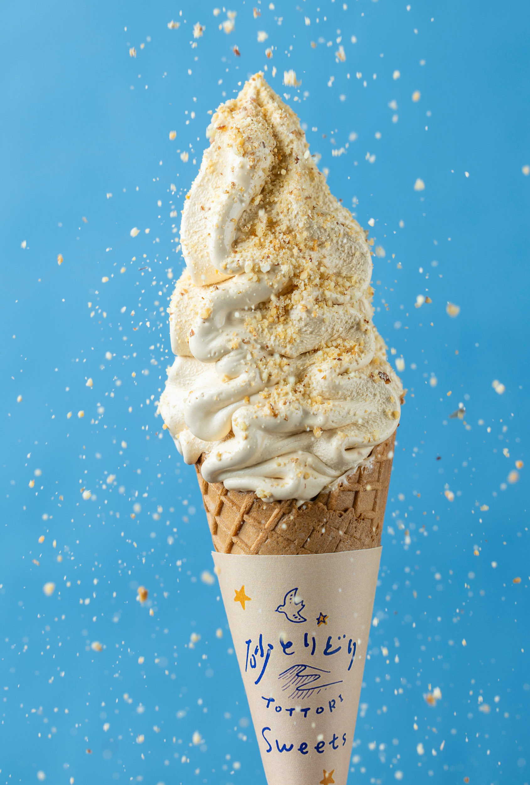 季節や気候などによって表情を変える“生きたアート”のような鳥取の砂丘をイメージした五感で楽しめるスイーツをお届けします。ファンの多い「白バラ牛乳」のコクを感じるソフトや、特産品の砂丘長いも「ねばりっこ」を使った“のびるソフト”、たっぷりの“メープル砂”をかけた砂丘を連想させるソフトなど、見た目にも楽しめるワクワクする一品をご提供します。