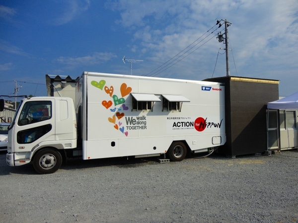 さらに同年8月には、当社が設計したキッチンカーを相馬市に寄贈。寄贈したキッチンカーを活用し、2015年まで4年間にわたり市内柚木地区の仮設住宅で食事提供を実施しました。その他、民間企業の社員食堂厨房を利用して市内9カ所の仮設住宅を対象に食事提供を行い、被災者の皆様の栄養サポートも含め支援活動を行いました。