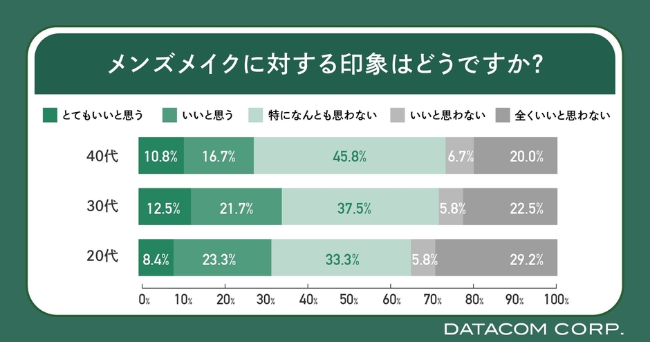 ・メンズメイクへの印象は肯定派30%、否定派30%とはっきり二分される