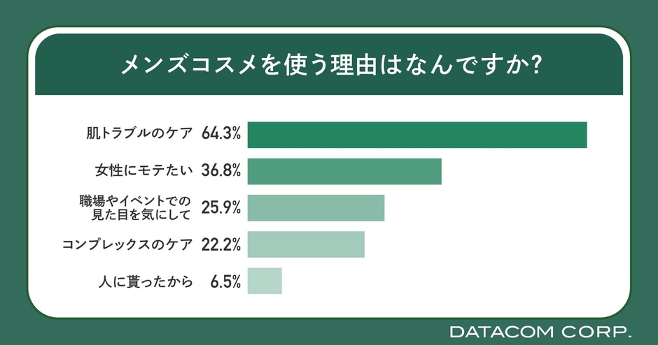 ・「肌トラブルのケア」を目的にメンズコスメを使う人が64.3%