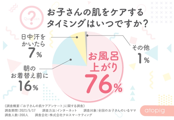 お子さんの肌の乾燥が気になり、朝晩にケアをされている方もいらっしゃいましたが、「お風呂上がり」にケアをされている方が集中されていました。