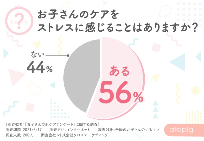 お子さんのケアをストレスに感じている方は半数以上に及ぶ!