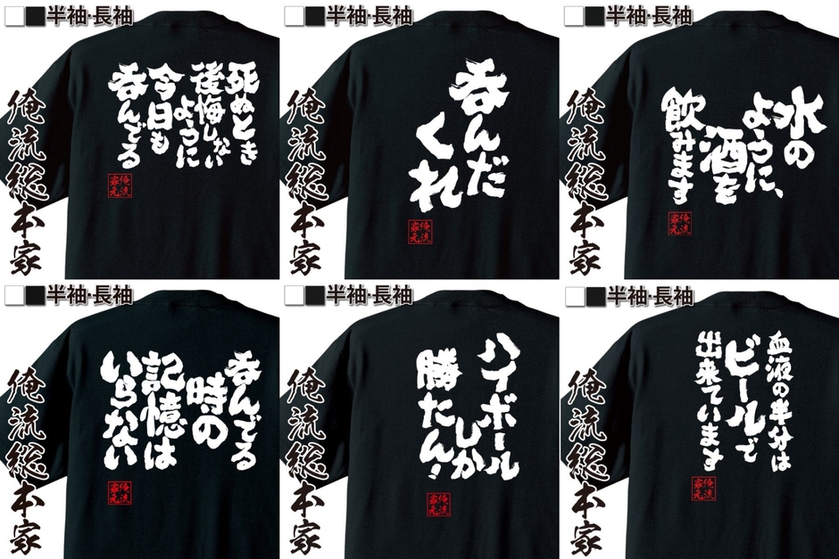 俺流総本家の語録Tシャツは、1万種類以上のデザインを取り揃えています。面白いものから感動的なものまで、多彩なデザインがあり、お客様一人ひとりの個性を引き立てる一枚を見つけることができます。カスタマイズ可能なデザインもあり、特別なイベントやギフトにも最適です。