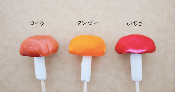 3色揃ったかわいいフォルムの「きのこロリポップ」