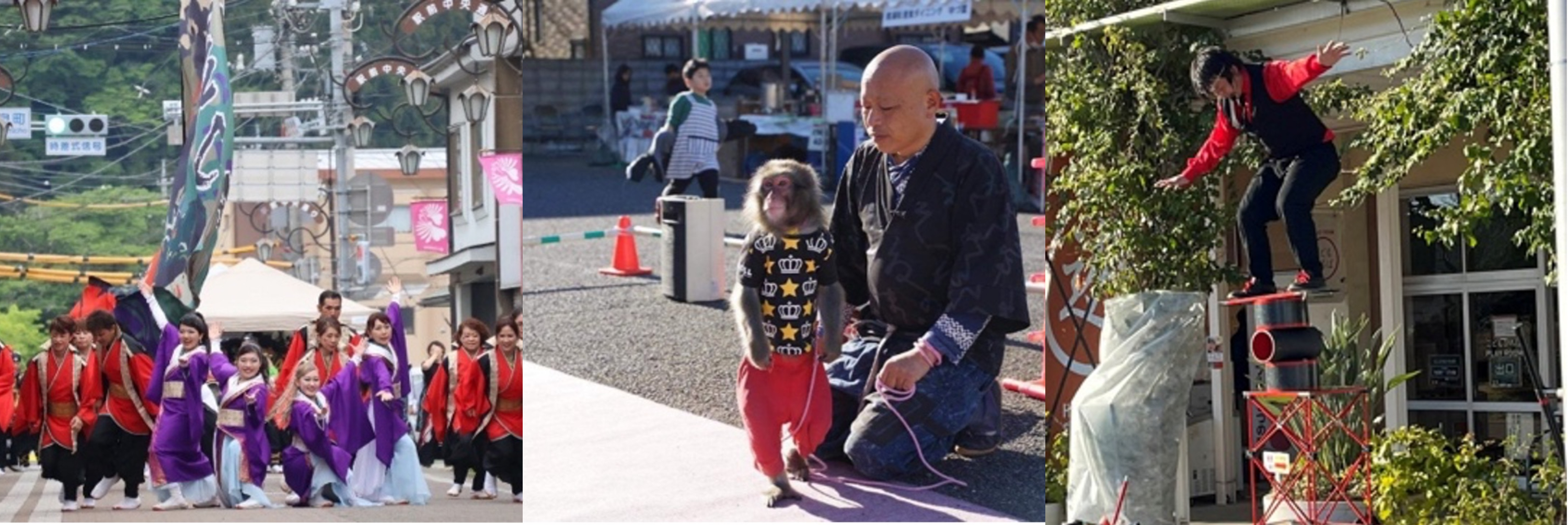 左から)坂東まさかどよさこいさん/おさるキッズさん/大道芸人 ゆうきさん