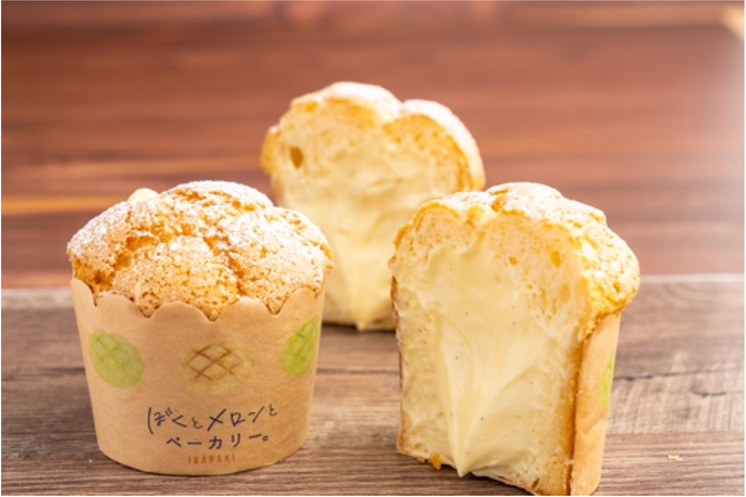 表面は茨城県産の青肉メロンピューレと、道の駅常総オリジナル卵「天てり卵」を使用したサクサクのクッキー生地になっており、中にはとろける濃厚カスタードがたっぷりと入っています。オープン以来62万個以上を売り上げてきた、道の駅常総の看板商品です。