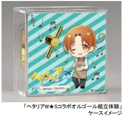 「ヘタリアW★Sコラボオルゴール組立体験」(上級コースのみ)では、アニメ『ヘタリア World★Stars』の主題歌「地球まるごとハグしたいんだ」のオルゴールを本イベント限定オリジナルデザインケース(1種)で作れます。(2025年5月23日(金)~8月22日(金)限定販売、5,000円/個)