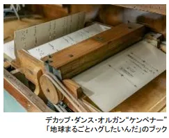 移動式のダンステントやダンスホールで楽団の代わりに演奏していました。穴の空いた厚紙「ブック」に曲をプログラムし、ブックを交換すると複数の曲が演奏できます。今回のイベントに合わせ「地球まるごとハグしたいんだ」を楽器に合わせて編曲し、本所蔵品専用のブックを新たに製作しました。