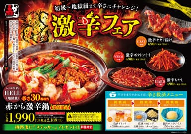 激辛フェアのメニューPOPと「激辛鍋」(1人前 2,189円)