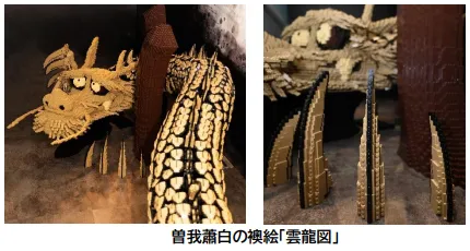 今回、入替を行った作品の一つ目は、江戸時代の画家・曽我蕭白が手掛けた襖絵『雲龍図』で、現在「ボストン美術館」に所蔵されているものをレゴ(R)ブロックで表現しました。墨を用いて襖いっぱいに力強く大胆に描かれた龍をレゴ(R)ブロックで立体的に表現されており、その圧倒的な迫力に思わず立ち止まって見入ってしまいます。
